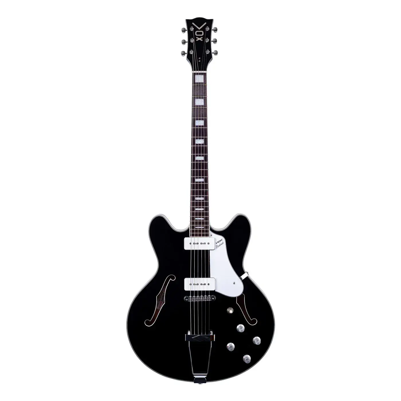 The Bobcat V90 reimagines the iconic Vox semi-hollow body guitars of the 1960s. Staying true to the original design, the V90 combines timeless aesthetics with cutting-edge enhancements to meet the demands of today’s guitarists. Improved playability, feedback control, and pickup performance make it the ideal instrument for modern musicians seeking a versatile, premium guitar.